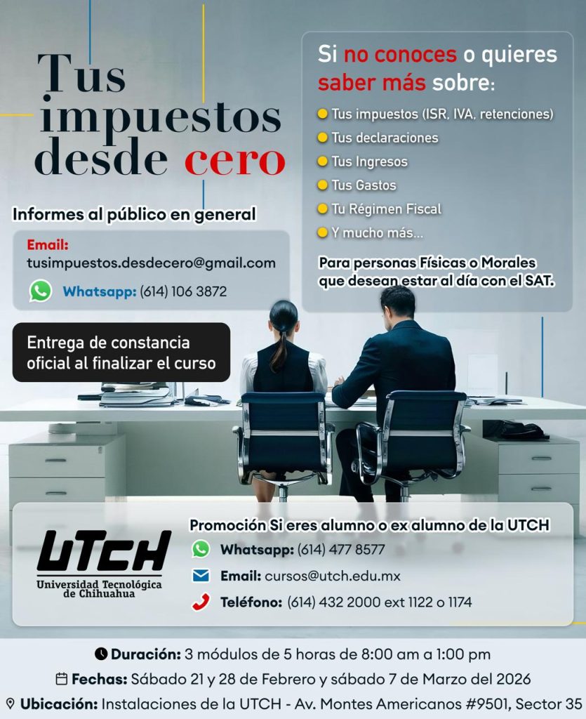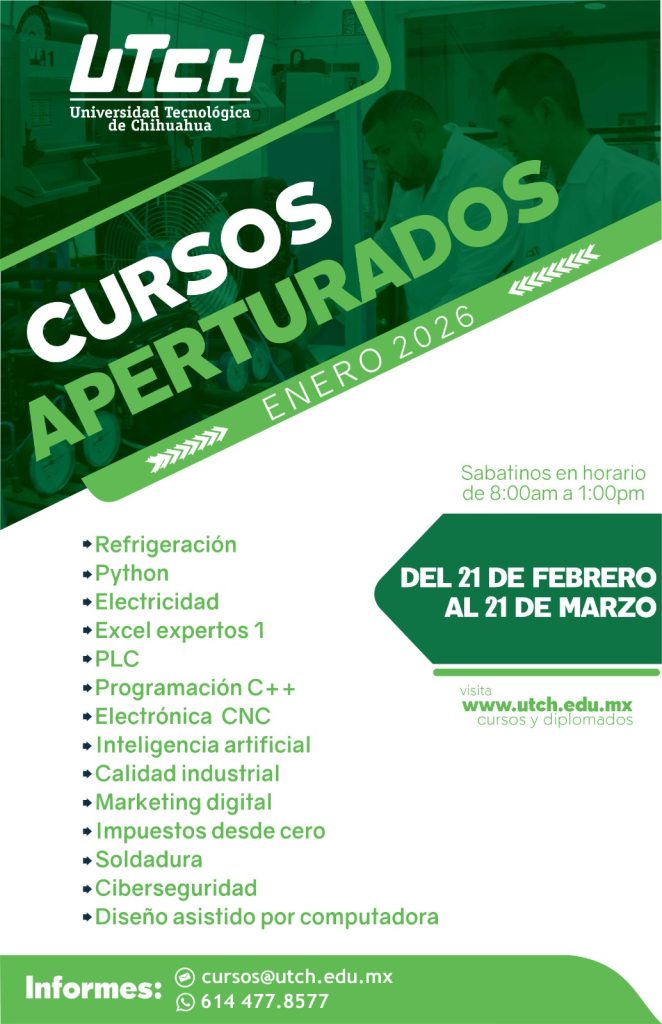 cursos@utch.edu.mx Tel. 4 32 20 00 Ext. 1122 y 1174 Whatsapp 614 477 85 77